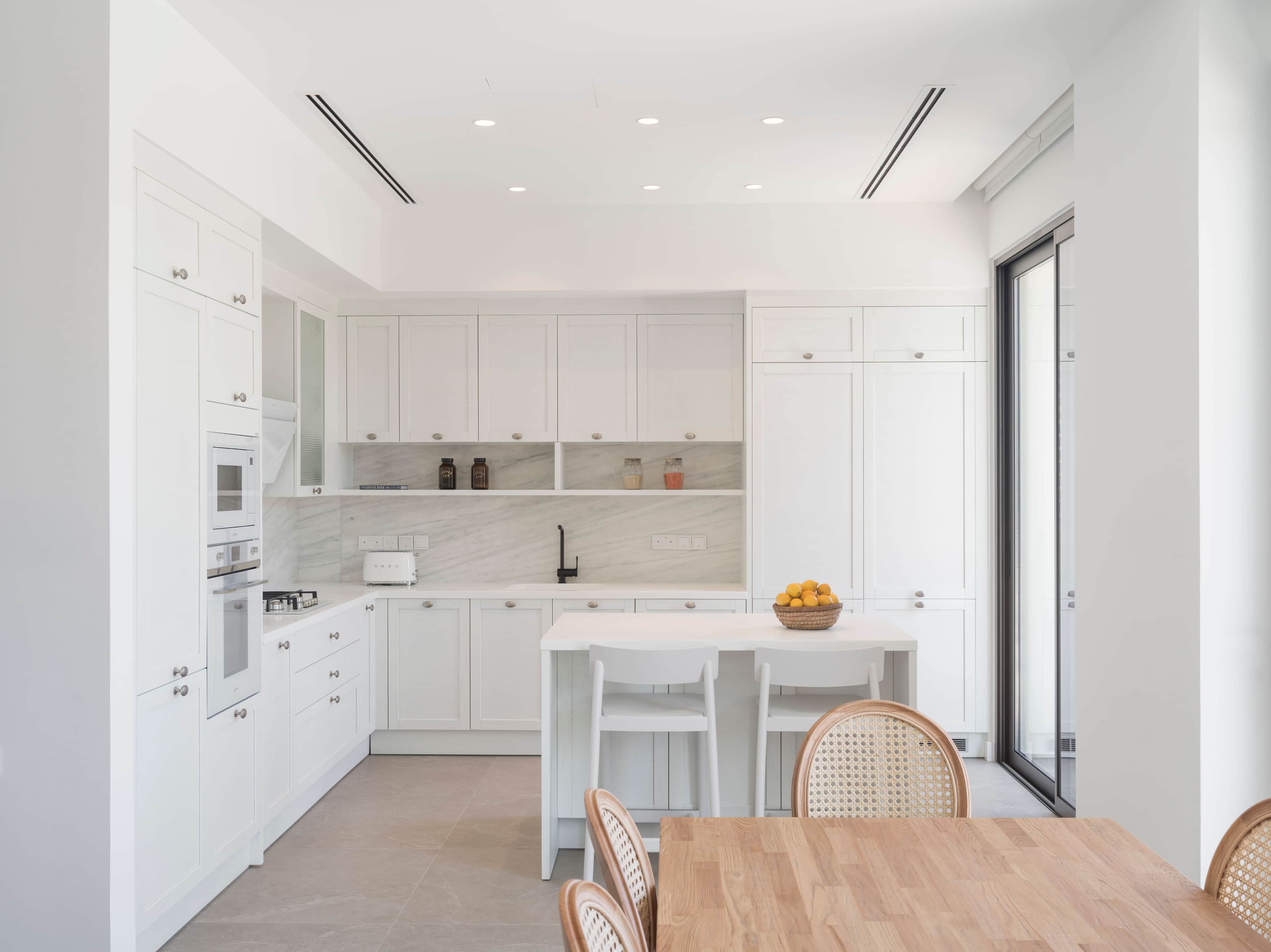 Interiors are designed to be sophisticated in their simplicity, using warm, neutral tones, clean, contemporary fittings and beautiful earth-borne materials. You can walk across the porcelain ceramic floors into the open-air courtyard or onto the shaded terraces, and everyday life moves seamlessly between inside and outside.